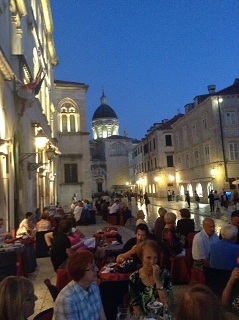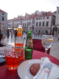 プラツァ通りの端にあるルジャ広場に面したカフェ
