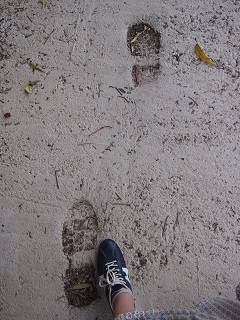 歩道の途中に残された足跡。