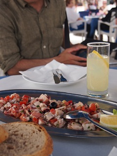 というわけでそこに戻り、お昼ご飯はタコのサラダ(パン付き)。